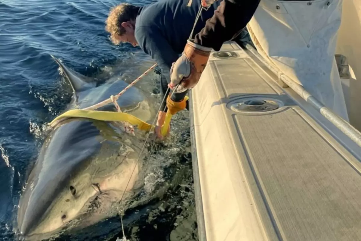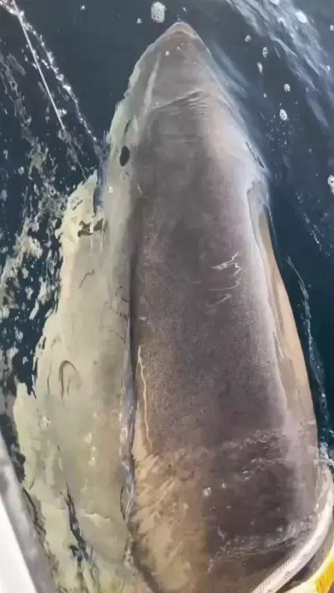 “Contender” adı verilen bu dev köpekbalığı 4,2 metre uzunluğunda, yaklaşık 750 kilo ağırlığında ve 30 yaşında.