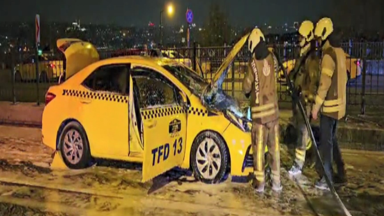 Beyoğlu’nda taksi yandı: 3 yolcu son anda kurtuldu