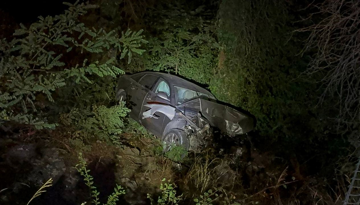 Yoldan çıkan otomobiller, kenardaki tel örgüleri aşarak 5 metre yükseklikten ormanlık alana düştü.