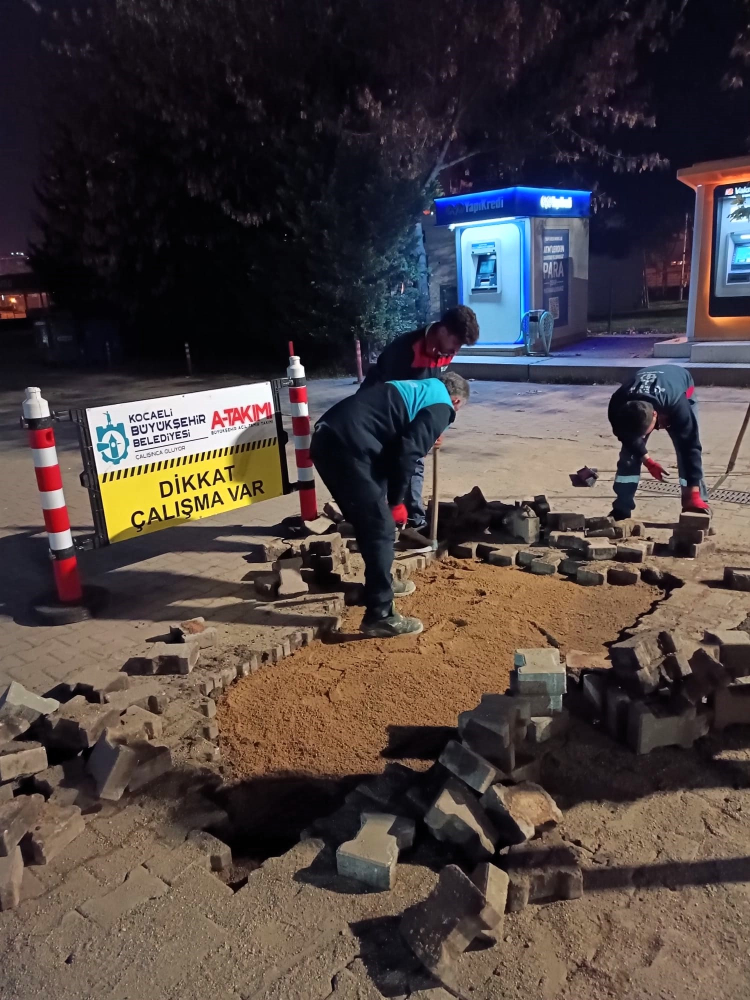 Büyükşehir bünyesinde hizmet veren Yol Bakım Timi ve A Takımı’nda her gece en az bir ekip nöbetçi olarak hazır bir şekilde görev bekliyor. Olası trafik kazaları veya araç arızalarına bağlı olarak yol yüzeyinde oluşan yağlanma ve kayganlık durumlarında ya da acil olarak onarılması gereken yol, kaldırım ve diğer durumlarda bu ekipler bölgeye hızlı bir şekilde ulaşarak gerekli çalışmaları yapıyor. Nöbetçi ekip sayısı ihtiyaç duyulduğunda artırılarak hizmette sınır tanınmıyor.