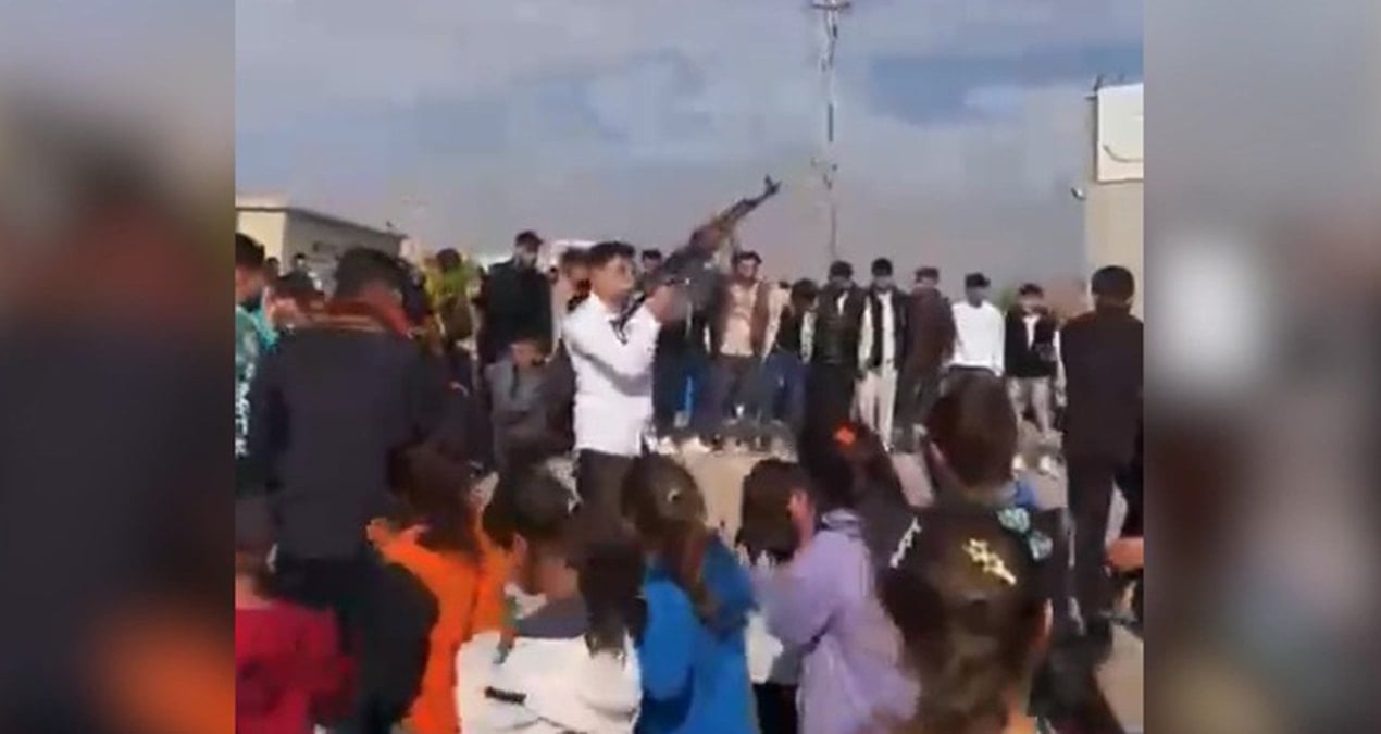 Onlarca çocuğun yanında uzun namlulu tüfekle havaya ateş açtılar