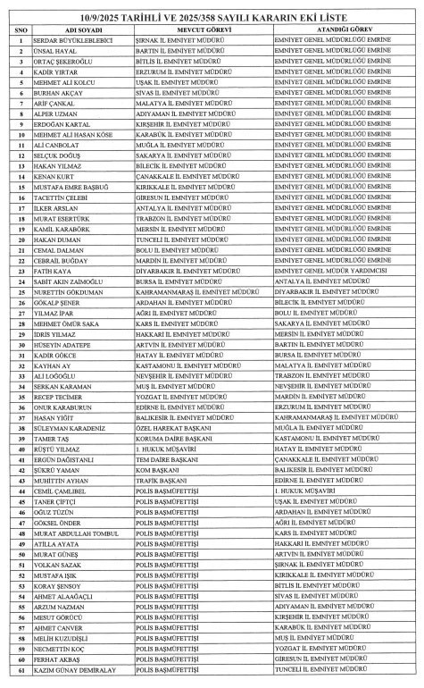 Kararda 37 ilin emniyet müdürlerinin değişmesi dikkat çekti. Kararda ayrıca 22 emniyet müdürü ise merkeze çekildi.