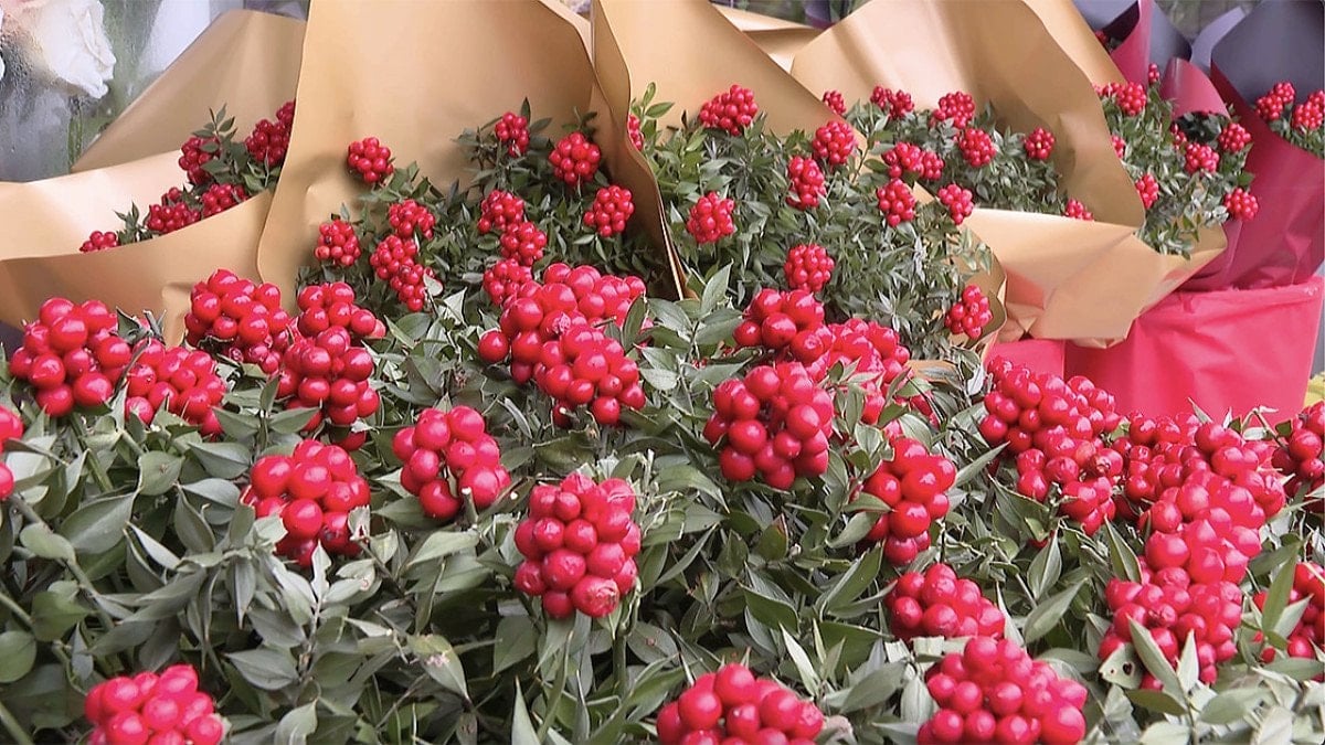İki farklı bitkinin bir araya getirilmesiyle hazırlanan çiçek, özellikle yeşil yaprakları üzerinde yer alan kırmızı meyvesinin verdiği renkle hemen her yaştan insanın dikkatini çekiyor.